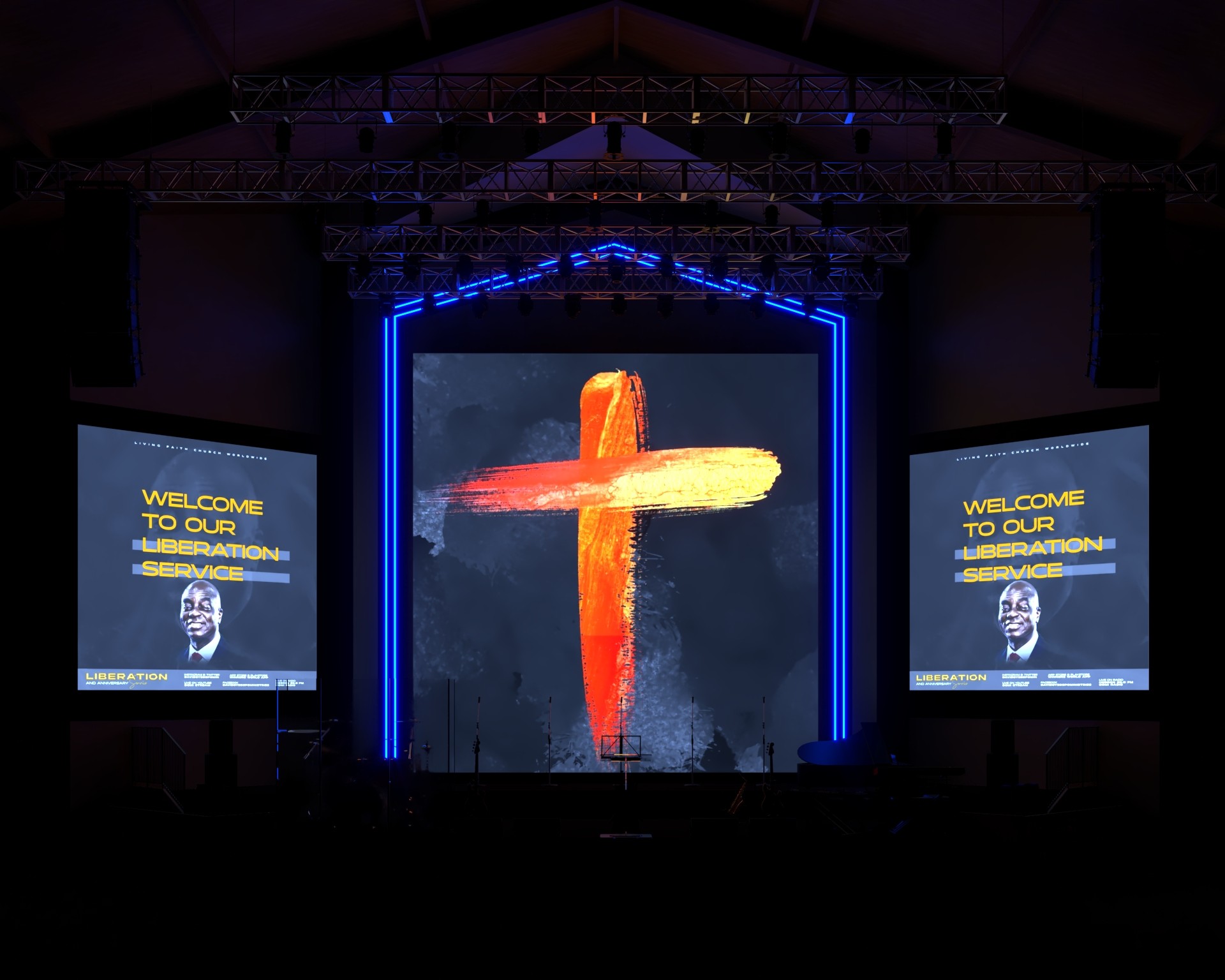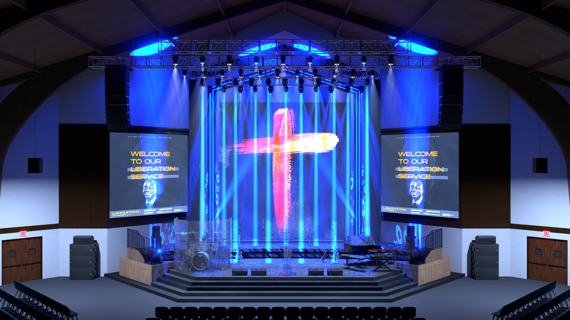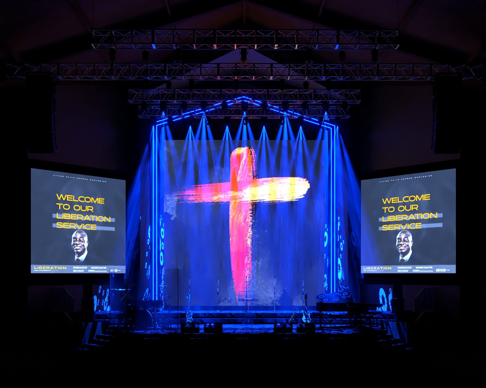 By maintaining the exposed rafters and generous ceiling height, we preserved the church’s classic charm while introducing a contemporary elegance that now defines the space. The result is a stage that feels as immersive as a theater, yet fully devoted to worship; proof that modern innovation and timeless architecture can coexist beautifully.
